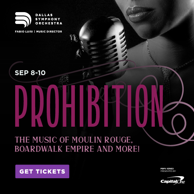 Prizes: Prizes for Sweepstakes include only those items expressly listed on the Sweepstakes Information Page for the corresponding Sweepstakes. Any other costs associated with the use or ownership of the prize is the sole responsibility of the winner. The Approximate Retail Value of each Prohibition Tickets - Dallas Symphony Orchestra is 92.00. Winners, 10 to be selected, will be by a random drawing from among all eligible entries received during the Sweepstakes Period. Winners will be notified by email that the prize will be available to be Pick Up. In the event the winner cannot be reached within 14 days following attempted notification, or if the prize or prize notification is returned as unclaimed or undeliverable, the prize will be forfeited and an alternate winner may be selected. No substitution of any prizes except by Operator. No prize transfer permitted. No prizes will be refunded or exchanged for cash. If a prize is unavailable, Operator reserves the sole right to substitute a prize of equal or greater value. All taxes, fees, and surcharges on prizes are the sole responsibility of the winner. Operator will not ship any prizes to an address outside the United States.