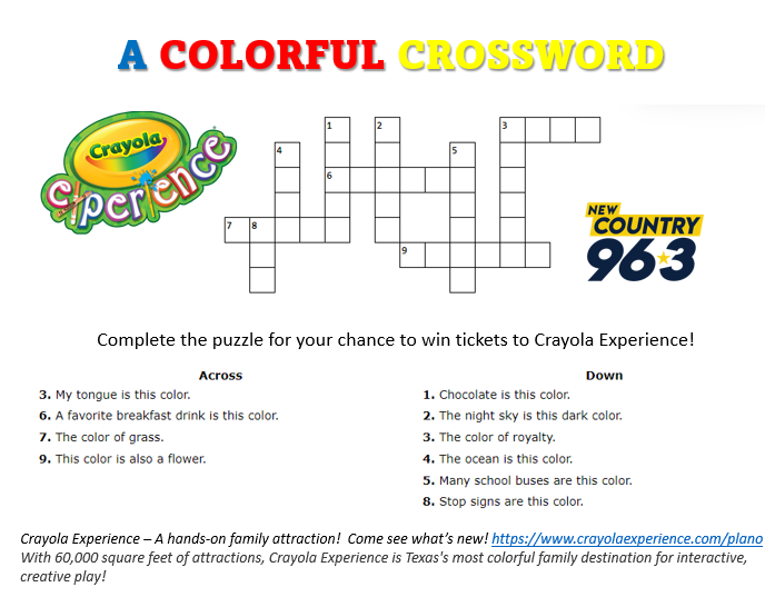 Prizes: Prizes for Sweepstakes include only those items expressly listed on the Sweepstakes Information Page for the corresponding Sweepstakes. Any other costs associated with the use or ownership of the prize is the sole responsibility of the winner. The Approximate Retail Value of each tickets to Crayola Experience is 60.00. Winners, 1 to be selected, will be by a random drawing from among all eligible entries received during the Sweepstakes Period. Winners will be notified by email that the prize will be available to be Pick Up. In the event the winner cannot be reached within 14 days following attempted notification, or if the prize or prize notification is returned as unclaimed or undeliverable, the prize will be forfeited and an alternate winner may be selected. No substitution of any prizes except by Operator. No prize transfer permitted. No prizes will be refunded or exchanged for cash. If a prize is unavailable, Operator reserves the sole right to substitute a prize of equal or greater value. All taxes, fees, and surcharges on prizes are the sole responsibility of the winner. Operator will not ship any prizes to an address outside the United States.