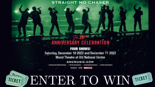 Prizes: Prizes for Sweepstakes include only those items expressly listed on the Sweepstakes Information Page for the corresponding Sweepstakes. Any other costs associated with the use or ownership of the prize is the sole responsibility of the winner. The Approximate Retail Value of each One (1) four pack of tickets to see Straight No Chaser is 200.00. Winners, 1 to be selected, will be by a random drawing from among all eligible entries received during the Sweepstakes Period. Winners will be notified by email that the prize will be available to be Pick Up. In the event the winner cannot be reached within 14 days following attempted notification, or if the prize or prize notification is returned as unclaimed or undeliverable, the prize will be forfeited and an alternate winner may be selected. No substitution of any prizes except by Operator. No prize transfer permitted. No prizes will be refunded or exchanged for cash. If a prize is unavailable, Operator reserves the sole right to substitute a prize of equal or greater value. All taxes, fees, and surcharges on prizes are the sole responsibility of the winner. Operator will not ship any prizes to an address outside the United States.