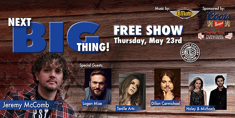 1. Contest begins April 22, 2019 and ends May 15, 2019. Listeners are invited to enter online through the Coyote Country Club VIP program (http://club.big999coyotecountry.com). A yet to be determined number of winners will be chosen from the entries received. Winners will each receive a pair of tickets to The Next Big Thing, featuring Jeremy McComb, playing on May 23, 2019 at the Knitting Factory in Spokane, WA. This prize is valued at approximately $0. All entries must be received by May 15, 2019 at 10am or by the time a maximum capacity is reached, whichever event occurs first. KXLY-FM 99.9 Coyote Country judges will determine the maximum capacity of tickets available for giveaway. The odds of winning depend on the total number of entries. A ticket does not guarantee entry into the show. Entrance is admitted on a first come first served basis by the Knitting Factory. Tickets will be mailed to winners throughout the duration of the contest period.