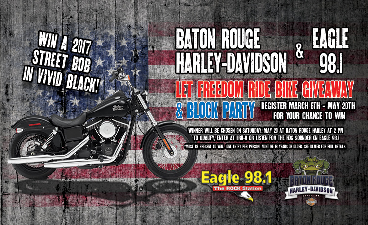 Prizes: Prizes for Sweepstakes include only those items expressly listed on the Sweepstakes Information Page for the corresponding Sweepstakes. Any other costs associated with the use or ownership of the prize is the sole responsibility of the winner. The Approximate Retail Value of each 2017 Harley Davidson Street Bob is 14,000.00. Winners, 1 to be selected, will be by a random drawing from among all eligible entries received during the Sweepstakes Period. Winners will be notified by email that the prize will be available to be Pick Up. In the event the winner cannot be reached within 14 days following attempted notification, or if the prize or prize notification is returned as unclaimed or undeliverable, the prize will be forfeited and an alternate winner may be selected. No substitution of any prizes except by Operator. No prize transfer permitted. No prizes will be refunded or exchanged for cash. If a prize is unavailable, Operator reserves the sole right to substitute a prize of equal or greater value. All taxes, fees, and surcharges on prizes are the sole responsibility of the winner. Operator will not ship any prizes to an address outside the United States.