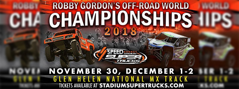 Prizes: Prizes for Sweepstakes include only those items expressly listed on the Sweepstakes Information Page for the corresponding Sweepstakes. Any other costs associated with the use or ownership of the prize is the sole responsibility of the winner. The Approximate Retail Value of each a pair of tickets to Robby Gordon's Off Road World Championships! is 80.00. Winners, 5 to be selected, will be by a random drawing from among all eligible entries received during the Sweepstakes Period. Winners will be notified by email that the prize will be available to be Pick Up. In the event the winner cannot be reached within 14 days following attempted notification, or if the prize or prize notification is returned as unclaimed or undeliverable, the prize will be forfeited and an alternate winner may be selected. No substitution of any prizes except by Operator. No prize transfer permitted. No prizes will be refunded or exchanged for cash. If a prize is unavailable, Operator reserves the sole right to substitute a prize of equal or greater value. All taxes, fees, and surcharges on prizes are the sole responsibility of the winner. Operator will not ship any prizes to an address outside the United States.
