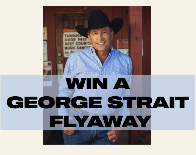 Prizes: Prizes for Sweepstakes include only those items expressly listed on the Sweepstakes Information Page for the corresponding Sweepstakes. Any other costs associated with the use or ownership of the prize is the sole responsibility of the winner. The Approximate Retail Value of each George Strait Flyaway is 0.00. Winners, 1 to be selected, will be by a random drawing from among all eligible entries received during the Sweepstakes Period. Winners will be notified by email that the prize will be available to be Pick Up. In the event the winner cannot be reached within 14 days following attempted notification, or if the prize or prize notification is returned as unclaimed or undeliverable, the prize will be forfeited and an alternate winner may be selected. No substitution of any prizes except by Operator. No prize transfer permitted. No prizes will be refunded or exchanged for cash. If a prize is unavailable, Operator reserves the sole right to substitute a prize of equal or greater value. All taxes, fees, and surcharges on prizes are the sole responsibility of the winner. Operator will not ship any prizes to an address outside the United States.