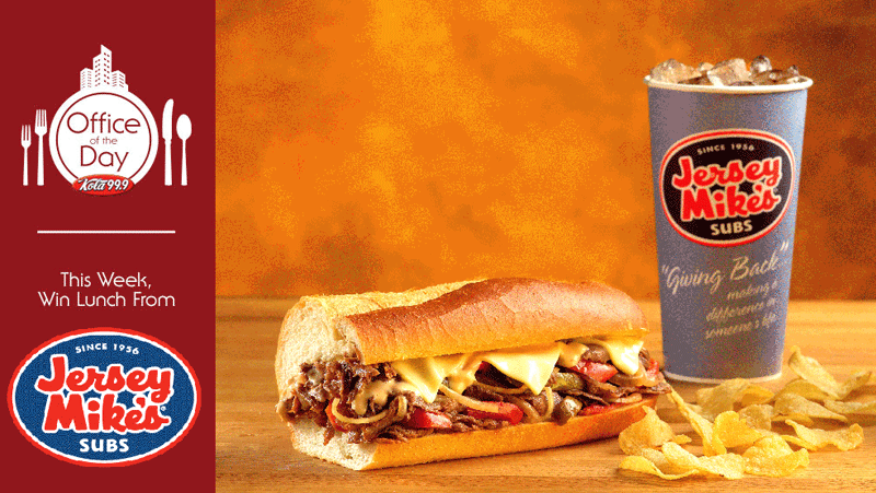 all listeners will be encouraged enter to be the Office of the Day. The qualifying office will randomly be selected from all entries during that week’s prize. Each weekday during the promotion at varying times KOLA will announce a new qualifier and their office. One qualifier per day Monday – Friday. The qualifying office will be entered to win lunch for 20 from the Jersey Mikes's Subs. Then, on Friday, October 30th, 2015 the winning office will be selected from all previously qualified offices during that week. Each time the prize changes offices will need to re-enter the contest to be considered for the prize. |