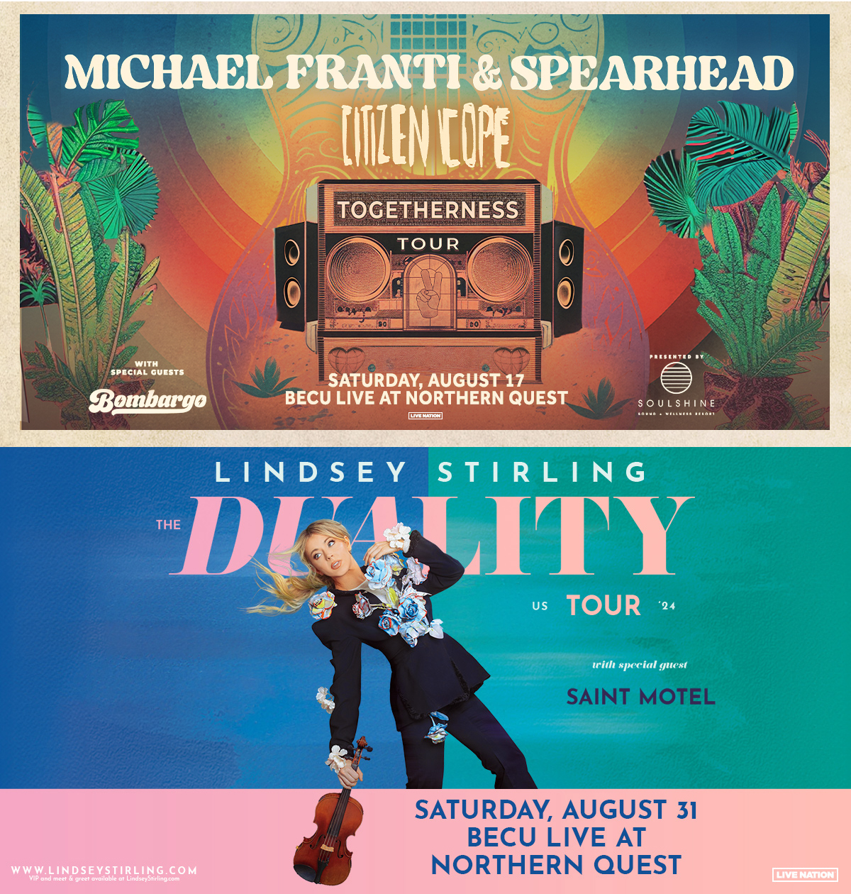1. Contest begins May 6, 2024 at 6AM and ends May 10, 2024 at 7PM. Contestants are invited to enter through the 92.9 ZZU VIP Program (vip.929zzu.com) once per day for free and 2,500 points per additional entry. Listeners will have their choice from two (2) different concerts and can select which one they would like to attend. Five (5) winners for each concert will be chosen from the entries received. Winner will receive a pair of tickets to the concert of their choosing when they took the survey. The concerts available are: Michael Franti at Northern Quest Resort & Casino on August 17, 2024, or Lindsey Stirling at Northern Quest Resort & Casino on August 31, 2024. Each prize is valued at $50. All entries must be received by 7PM on May 10, 2024. The drawing will take place at KXLY Broadcast Group (500 W. Boone Ave., Spokane, WA 99201) on May 13, 2024 following the conclusion of the contest period. Winner does not need to be present at the time of the drawing to win. The odds of winning depend on the total number of entries.