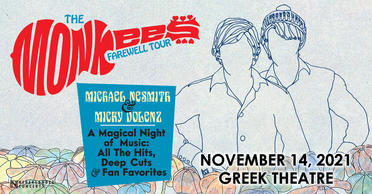 Prizes: Prizes for Sweepstakes include only those items expressly listed on the Sweepstakes Information Page for the corresponding Sweepstakes. Any other costs associated with the use or ownership of the prize is the sole responsibility of the winner. The Approximate Retail Value of each A pair of tickets to see The Monkees Farewell Tour is 160.00. Winners, 1 to be selected, will be by a random drawing from among all eligible entries received during the Sweepstakes Period. Winners will be notified by email that the prize will be available to be Pick Up. In the event the winner cannot be reached within 14 days following attempted notification, or if the prize or prize notification is returned as unclaimed or undeliverable, the prize will be forfeited and an alternate winner may be selected. No substitution of any prizes except by Operator. No prize transfer permitted. No prizes will be refunded or exchanged for cash. If a prize is unavailable, Operator reserves the sole right to substitute a prize of equal or greater value. All taxes, fees, and surcharges on prizes are the sole responsibility of the winner. Operator will not ship any prizes to an address outside the United States.