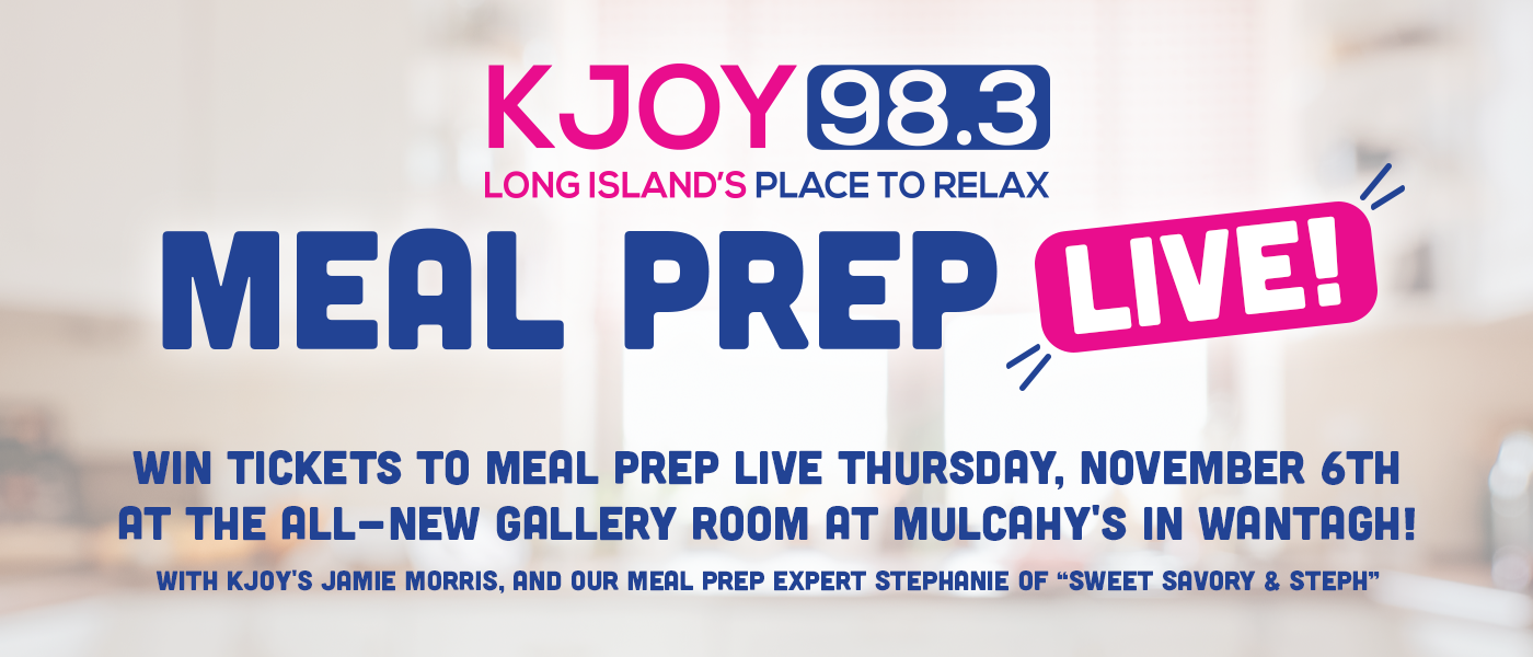 Join KJOY's Jamie Morris, and our Meal Prep Expert Stephanie of Sweet Savory & Steph for Meal Prep Live Thursday, November 6th at the all-new Gallery Room at Mulcahy's in Wantagh!