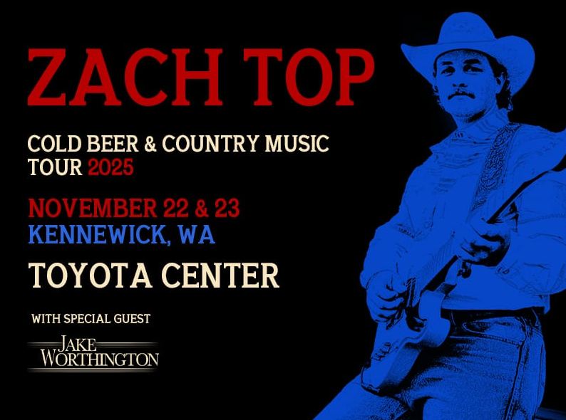 Enter for your chance to win a pair of tickets to see Zach Top with Jake Worthington, Sunday November 23, 2025 at The Toyota Center in Kennewick.