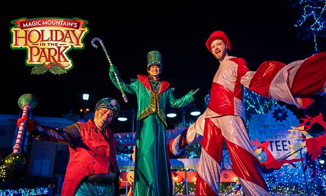 It’s time to shine at Magic Mountain’s Holiday in the Park! Experience the magic of the holiday season with dazzling lights and thrilling sights select dates November 27 through January 4.
