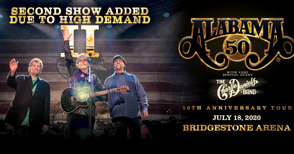 6.Prizes. One (1) Prize will be awarded in this Contest. The prize is two (2) tickets to Alabama on July 18, 2020 at the Bridgestone Arena, 501 Broadway, Nashville, TN 37203. ARV [One Hundred Dollars] ($100). Winner is responsible for all taxes associated with prize receipt and/or use. Odds of winning the Grand Prize depend on a number of factors including the number of eligible entries received during the Contest Period and listeners participating at any given time.
