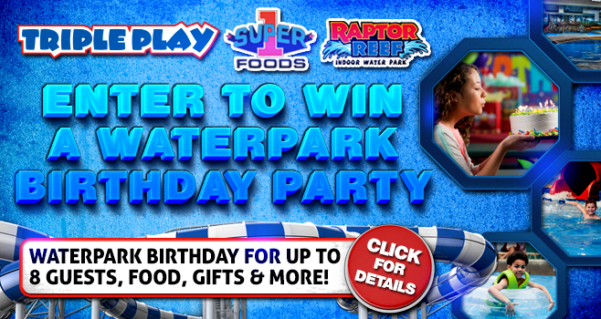 Each month one winner will be chosen to receive a Triple Play Raptor Reef Indoor Water Park Birthday Party and a birthday cake from Super 1 Foods in Hayden, ID!