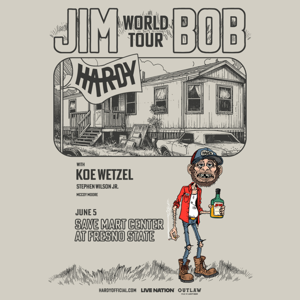 Prizes: Prizes for Sweepstakes include only those items expressly listed on the Sweepstakes Information Page for the corresponding Sweepstakes. Any other costs associated with the use or ownership of the prize is the sole responsibility of the winner. The Approximate Retail Value of each a pair of tickets to Jim Bob World Tour featuring HARDY at the Save Mart Center on June 5th is 120.00. Winners, 1 to be selected, will be by a random drawing from among all eligible entries received during the Sweepstakes Period. Winners will be notified by email that the prize will be available to be Pick Up. In the event the winner cannot be reached within 14 days following attempted notification, or if the prize or prize notification is returned as unclaimed or undeliverable, the prize will be forfeited and an alternate winner may be selected. No substitution of any prizes except by Operator. No prize transfer permitted. No prizes will be refunded or exchanged for cash. If a prize is unavailable, Operator reserves the sole right to substitute a prize of equal or greater value. All taxes, fees, and surcharges on prizes are the sole responsibility of the winner. Operator will not ship any prizes to an address outside the United States.