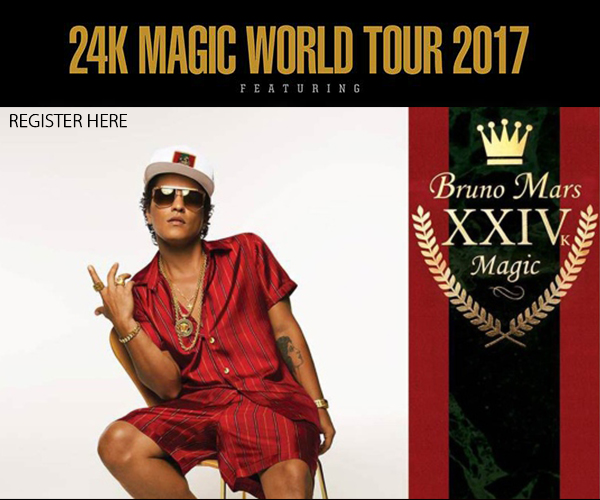 Prizes: Prizes for Sweepstakes include only those items expressly listed on the Sweepstakes Information Page for the corresponding Sweepstakes. Any other costs associated with the use or ownership of the prize is the sole responsibility of the winner. The Approximate Retail Value of each Tickets to Bruno Mars 24kt Magic Tour New Orleans is 60.00. Winners, 10 to be selected, will be by a random drawing from among all eligible entries received during the Sweepstakes Period. Winners will be notified by email that the prize will be available to be Pick Up. In the event the winner cannot be reached within 14 days following attempted notification, or if the prize or prize notification is returned as unclaimed or undeliverable, the prize will be forfeited and an alternate winner may be selected. No substitution of any prizes except by Operator. No prize transfer permitted. No prizes will be refunded or exchanged for cash. If a prize is unavailable, Operator reserves the sole right to substitute a prize of equal or greater value. All taxes, fees, and surcharges on prizes are the sole responsibility of the winner. Operator will not ship any prizes to an address outside the United States.